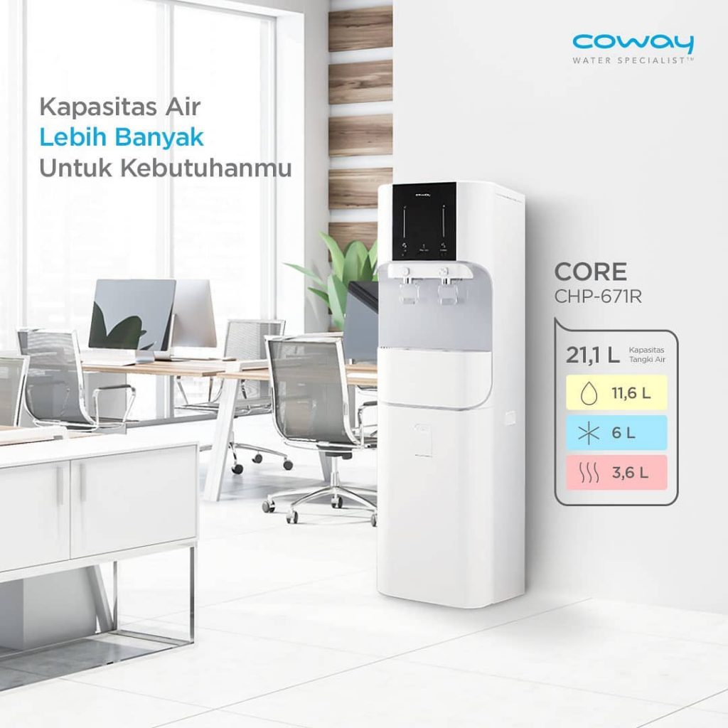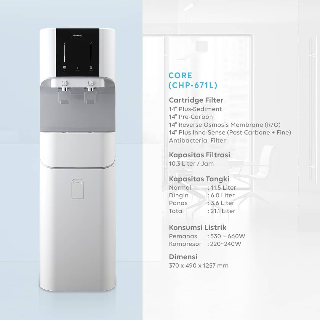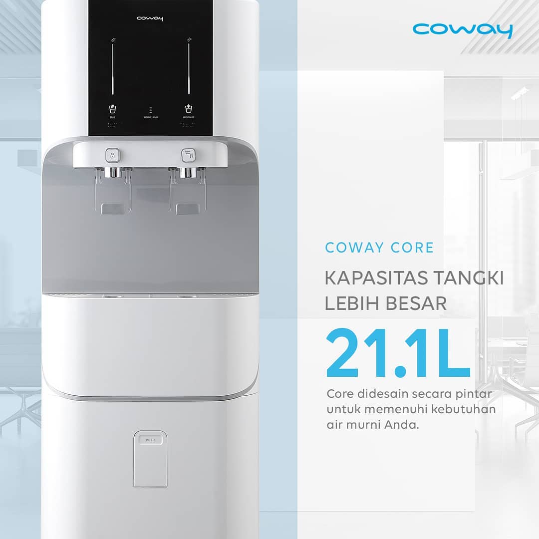 Sudah saatnya mengganti cara lama minum air. Pemurni Air Core, dengan design yang modern dan kapasitas tangki air yang lebih besar, memurnikan air lebih banyak, sangat cocok untuk kebutuhan kantor. Core memurnikan air dengan sempurna, lebih besar dan lebih hemat.