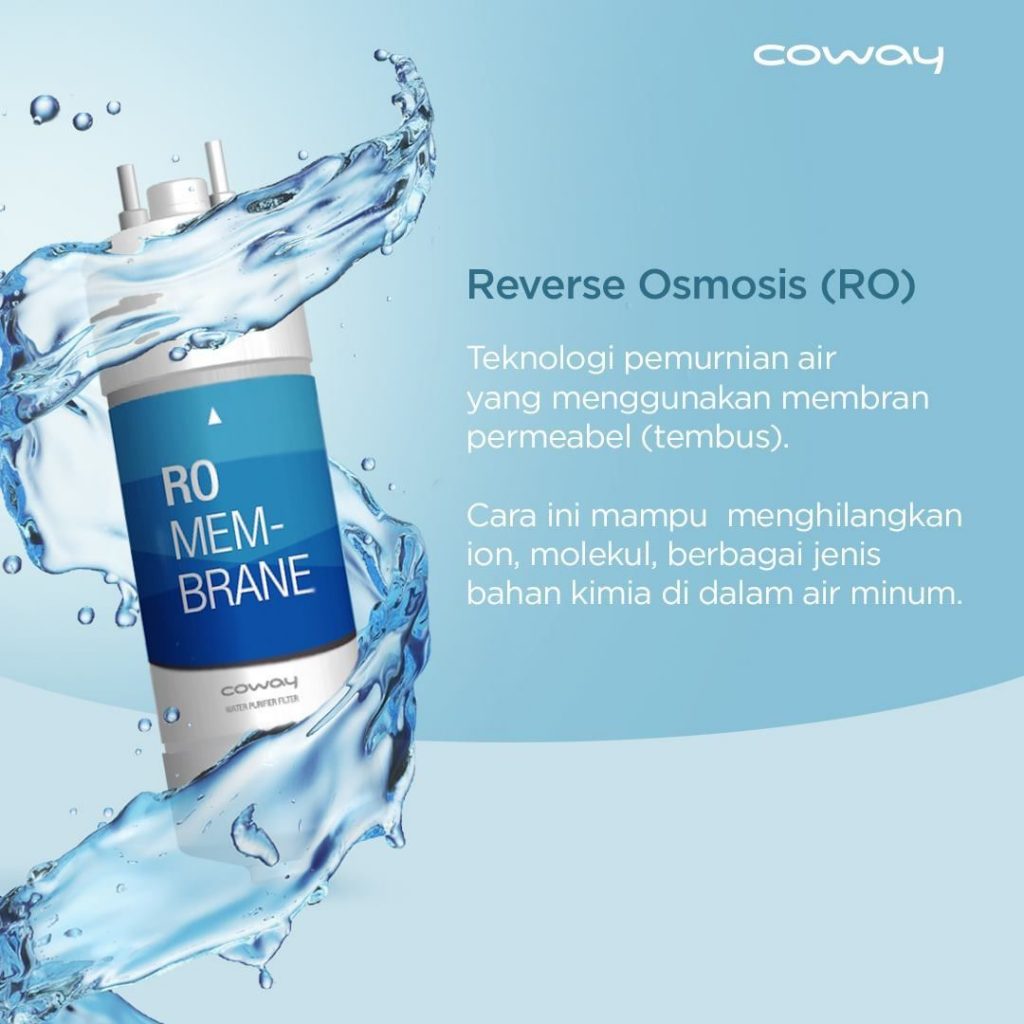Reverse Osmosis (RO) yang menjadi salah satu dari 4 filter di setiap product Coway water purifier yang menghasilkan air minum murni yang aman dan sehat.