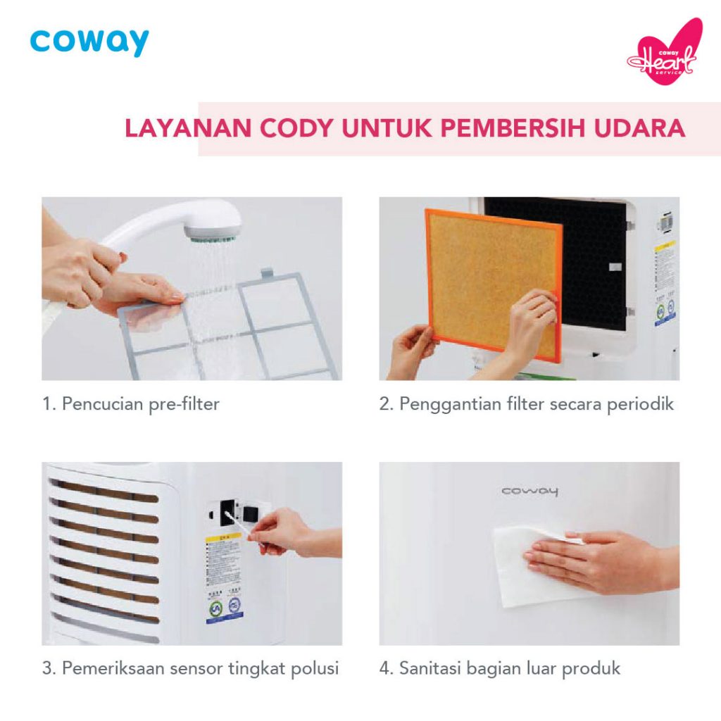 Hi! Aku mau share sedikit tentang perawatan Air Purifierku di rumah. Jadi, udah dua bulan ini aku pakai Storm Air Purifier dari Coway. Dan, kebetulan ini adalah saatnya aku kedatangan Heart Service atau maintenance rutin tiap dua bulannya. Jadi, disini ada Coway Lady atau Cody yang akan mengecek kondisi produk, atau mengganti filter sesuai dengan lifetimenya. Senengnya jadi ga perlu khawatir dan ribet lagi masalah perawatan air purifier dan water purifier dirumah. Dan ini semua FREE!